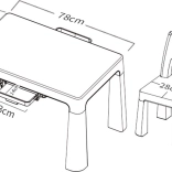 A FREEON Neo gyerekasztal tartós műanyagból készült, nagyszerű kiegészítő minden gyerekszobában, játszószobában vagy kertben. Modern megjelenése és funkcionalitása ideális választássá teszi kis művészek és olvasók számára. Az asztal két darab, 24 x 13 cm méretű fiókkal van felszerelve, amelyek ideálisak apróságok tárolására.