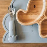 A tányér 100% bambuszból készül, nem toxikus lakkozással, és nem tartalmaz BPA-t, PVC-t, ftalátokat és melanint. Sima felülete miatt könnyen tisztítható, és bírja a mindennapos használatot. Ideális az önálló étkezéshez és a BLW módszerhez.
