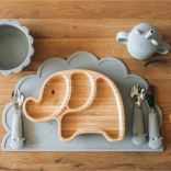 Stílusos, 100% bambuszból készült gyerek tányér elefánt formában, levehető tapadókoronggal a stabil asztali rögzítéshez. 3 praktikus rekesszel az ételek elkülönítéséhez, BPA-, PVC-, ftalát- és melaminmentes, valamint könnyen tisztítható és tartós a mindennapi használathoz.