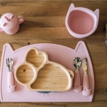 A tányér 100% bambuszból készül, nem toxikus lakkozással, sima felülete pedig könnyen tisztítható. Az állatfigura praktikus formája motiválja a gyerekeket az evésre és kellemesebbé teszi minden étkezést.