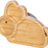 Aranyos, nyuszi alakú gyerek tányér minőségi bambuszból, levehető tapadókoronggal a stabil rögzítéshez. 3 rekesszel az áttekinthető tálaláshoz, biztonságos anyagokkal BPA, PVC, ftalátok és melamin nélkül, valamint könnyű karbantartással.