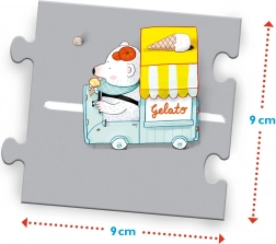 Az elemek okos kialakításának köszönhetően a gyerekek könnyen variálhatják az útvonalat, és minden alkalommal új kombinációt fedeznek fel. A minőségi papír és karton kellemes kirakást és hosszú élettartamot biztosít. 4 éves kortól ajánlott kis autósoknak.