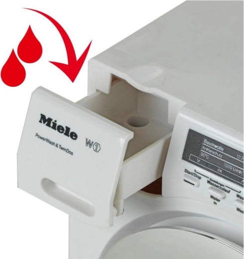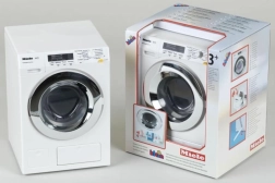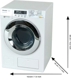 A KLEIN MIELE gyerekmosógépe hűen utánozza a valódi készüléket, és szórakoztató, egyben fejlesztő háztartási szerepjátékot kínál a gyerekeknek. A „száraz” és vizes mosás lehetőségének köszönhetően a gyerekek kipróbálhatják a mosás egyes fázisait, miközben fejlődik finommotorikájuk és felelősségtudatuk.