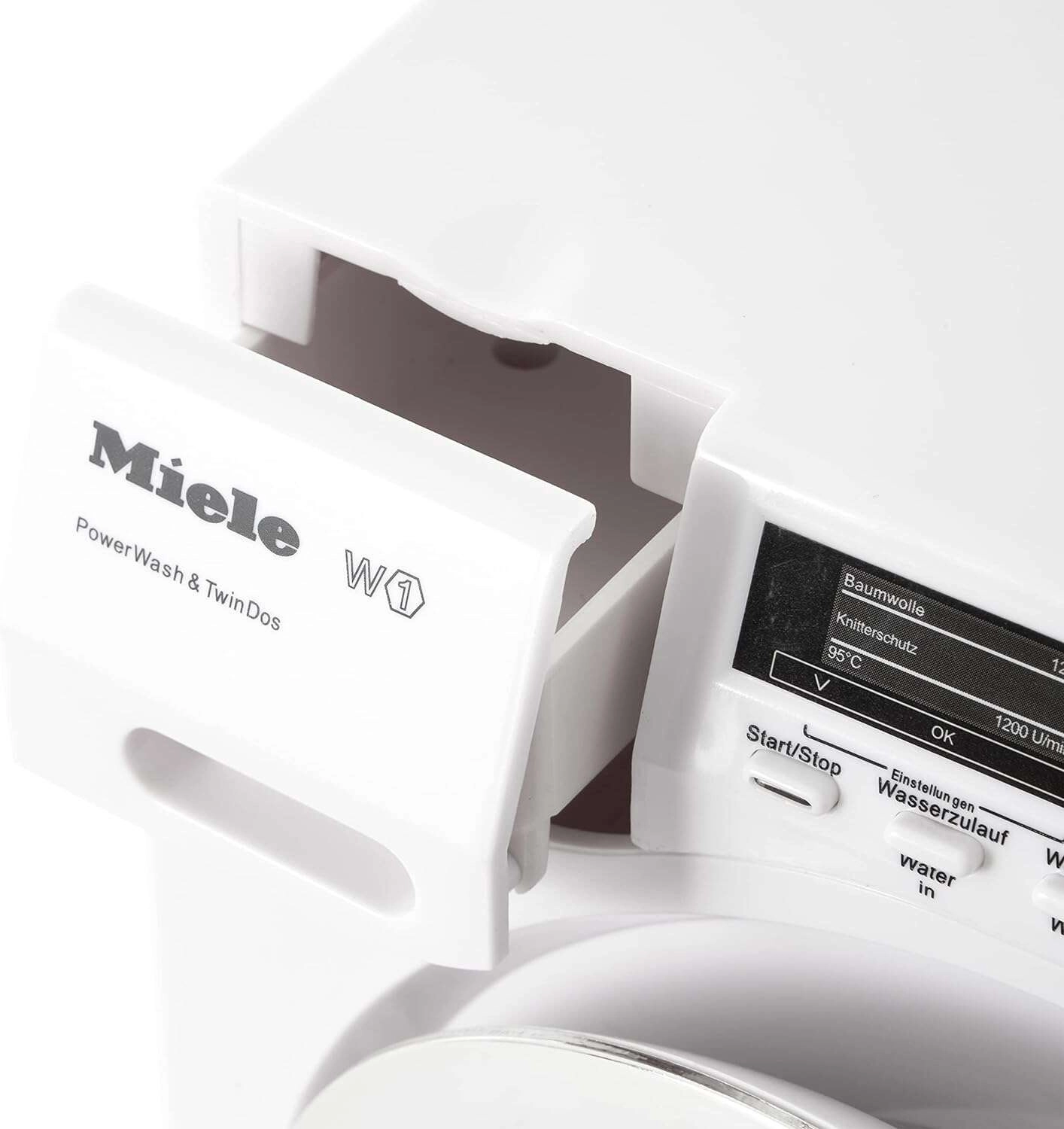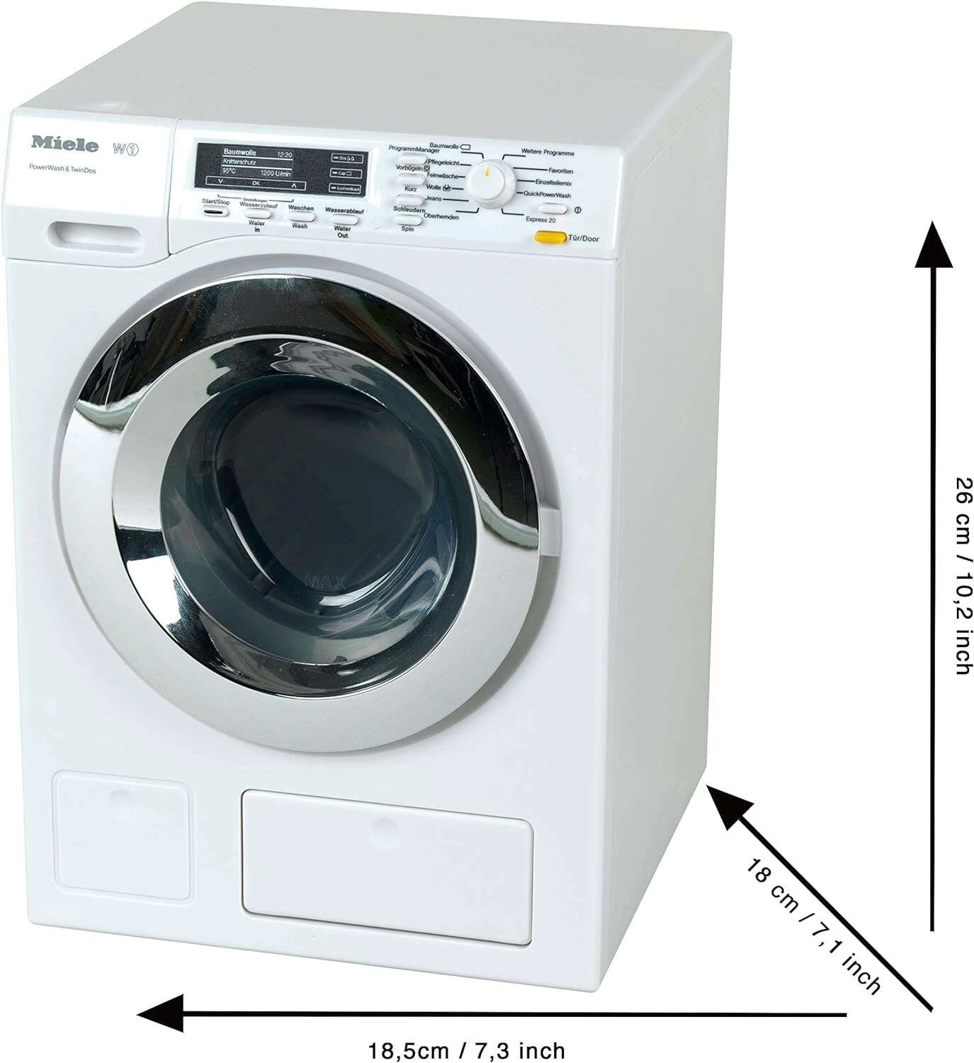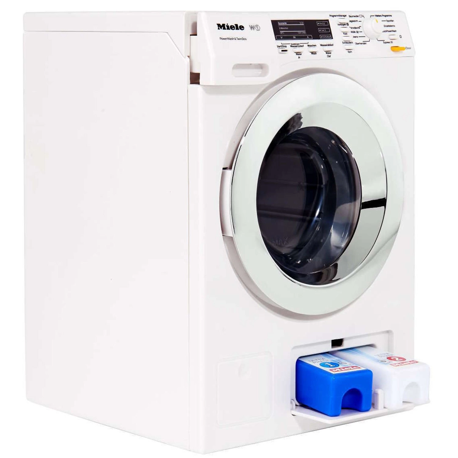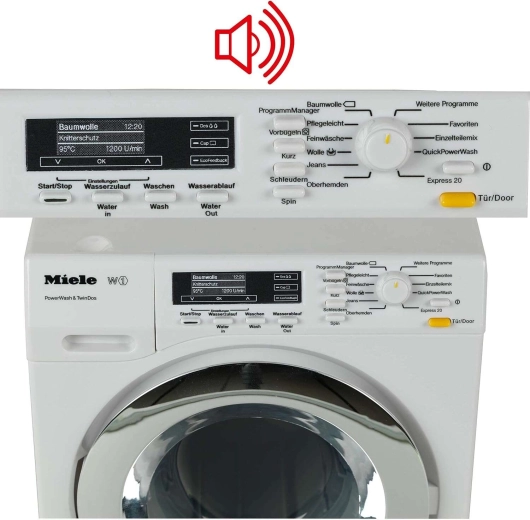 Realista MIELE gyermek mosógép a KLEIN márkától autentikus szórakozást nyújt a gyerekeknek a felnőttek utánzásához. Forgó dobbal, 4 mosási ciklussal, LED jelzéssel, valamint vizes és száraz játéklehetőséggel rendelkezik. A hanghatások és a működő vízbetöltő fiók még élethűbbé és biztonságossá teszik a játékot 3 éves kortól.