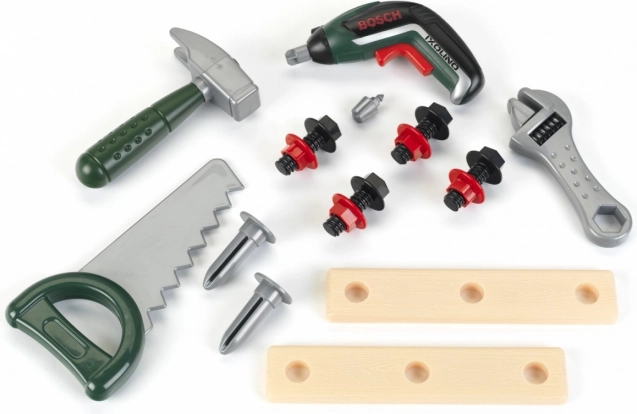 Szórakoztató készlet kis barkácsolóknak: gyerek szerszámos koff er Bosch Ixolino II csavarozóval, amely támogatja a kreativitást és a finommotorika fejlődését. Valósághű elemeket tartalmaz, és ideális szerelősettes szerepjátékhoz. Könnyű, biztonságos és egyszerűen kezelhető – tökéletes ajándék építeni és csavarozni szerető gyerekeknek.