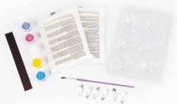 Műanyag forma motívumokkal, festékek, ecset, kiegészítők mágnesek/pinek készítéséhez, útmutató