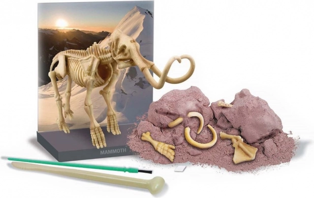 Fedezze fel a paleontológia varázsát a Tudományos készlettel Ásatás - Mamut. A készlet tartalmaz egy gipsz blokkot, amelyben a mamut csontjai vannak elrejtve, és eszközöket az azok megtalálásához. Miután minden csontot megtalált és megtisztított, összeállítható a teljes csontváz, amely körülbelül 21 centiméter magas.
