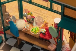 A cukorkaadagolóktól a finomságokkal teli polcokig – a jelenet tele van aprólékosan kidolgozott elemekkel, amelyek minden pillantást élménnyé tesznek.