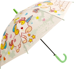 Aranyos gyermek esernyő unikornis mintával, amely megvédi a gyerekeket az esőtől, és egyben lenyűgözi őket színes dizájnjával. A kompakt 50 cm-es hosszúságnak köszönhetően könnyen hordozható iskolába és kirándulásokra, és több színváltozatban elérhető.
