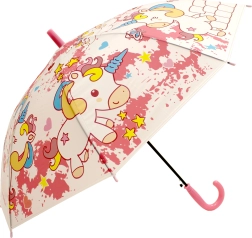 A játékos és könnyű esernyő unikornis mintával remek társ az esős napokra. A kompakt 50 cm-es méret ideális a gyerekeknek, a markolat kényelmes fogást biztosít, a szerkezet pedig a könnyű nyitásra lett tervezve.