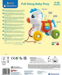 A Clementoni Baby sorozat interaktív, húzható pónija úgy készült, hogy mozgásra motiválja a gyermekeket és támogassa természetes kíváncsiságukat. Az ülésen található gombok vidám hangokat és dallamokat indítanak, melyek fejlesztik a hallást és tanítják az ok-okozati összefüggéseket. A zsinór segítségével a gyerekek könnyedén vezethetik a pónit, miközben gyakorolják a járás közbeni stabilitást.