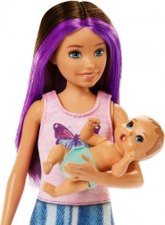 A Skipper baba lila hajtincsekkel filmes öltözéket visel, és készen áll számtalan gondoskodó, gyengéd altatós történetre. A sok apró részlet miatt a szett ideális ajándék 3 éves kortól testvéreknek és kis dadusoknak, akik imádják a Barbie babák világát.