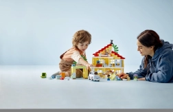 A készlet része egy világító csillag az esti hangulat megteremtéséhez, egy konyha az egészséges ételek felfedezéséhez, valamint egy garázs elektromos kisautóval, amely napelemek segítségével „töltődik”. A gazdag figura-válogatás (anya, apa, három gyerek, macska és kutya) végtelen családi jelenetet tesz lehetővé, és támogatja az érzelmek és a kommunikáció fejlesztését.