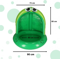 A játéktárs élénk zöld designja nagy békaszemekkel és felfújható lábakkal autentikus megjelenést kölcsönöz. Ráadásul a okos árnyékoló megóvja a gyermekeket a káros UV-sugárzástól, ami garantálja a hosszú órás biztonságos vízi játékot.