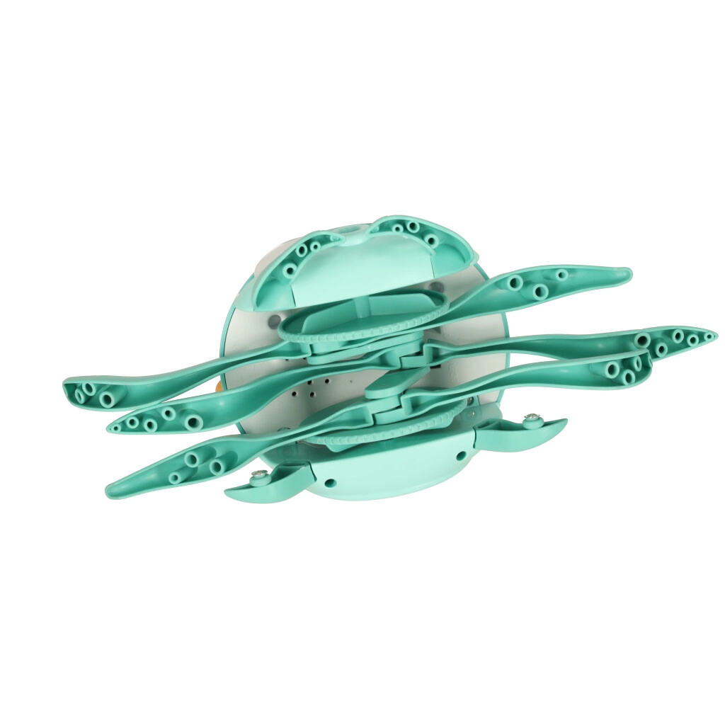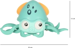 Ez az interaktív polip mozgásra és felfedezésre ösztönzi a gyerekeket. Gyorsan mászik a padlón, akadállyal érintkezve automatikusan irányt vált és folytatja az útját, így folyamatosan fenntartja a figyelmet és a lelkesedést. A zenei kíséret segíti a hallás és a ritmusérzék fejlődését.