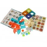 4× golyó; 9× világító elem; 16× mágneses négyzet; 20× különböző alakú elem; 20× matrica