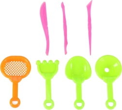 1 kilogramm homok rengeteg lehetőséget biztosít kastélyok és formák megalkotására. A szett tartalmaz számos kiegészítőt, mint például: szitát, lapátot, gereblyét és modellező pálcikákat, melyek segítik a szórakozás folyékonyságát.