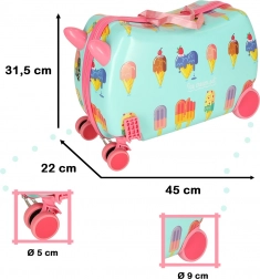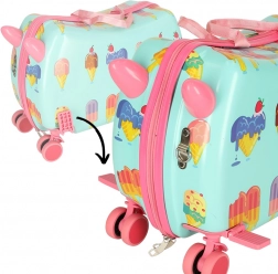 Ez a gyermek kézipoggyász méretű bőrönd ideális társ nyaralásokra, kirándulásokra és hétvégi látogatásokra. A játékos fagylaltminta első pillantásra megragadja a figyelmet, a strapabíró műanyag kivitel pedig bírja a mindennapos utazást. A gyerekek imádni fogják, hogy ráülhetnek és pihenhetnek rajta, a szülők pedig a praktikus belső elrendezést és az egyszerű kezelhetőséget értékelik.