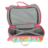 A négy rózsaszín kerék és az erős fogantyúk megkönnyítik a bőrönd irányítását a gyerekeknek és a szülőknek is. A kétirányú cipzár felgyorsítja a be- és kipakolást.
