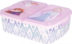 Eredeti és funkcionális multi uzsonnás doboz, amely vidámabbá teszi a gyerekek mindennapjait. A három különálló rekesznek köszönhetően könnyedén elkülöníthető a gyümölcs és zöldség, a szendvics és a kis nassolnivalók. Az ellenálló kivitel bírja az ütközéseket és eséseket a mindennapi használat során, a Jégvarázs 2 vonzó motívumait pedig a gyerekek imádni fogják.
