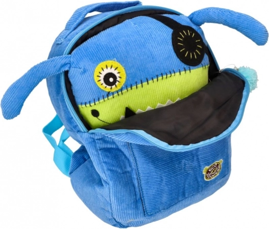 A hátizsák vidám szörnymotívummal van tervezve, amely olyan részleteket tartalmaz, mint a szemek és a fogak, ami örömöt okoz a gyerekeknek minden viseléskor.