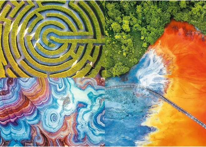 Merüljön el a színek és textúrák világában a természeti tájak légi nézetei által inspirált motívummal – a zöld labirintustól a geotermikus tájakon át a sokszínű geológiai formációkig. A TREFL kirakó UFT (Unlimited Fit Technology) technológiával lehetővé teszi több motívum egyidejű összeillesztését, így saját, egyedi kollázst hozhat létre.