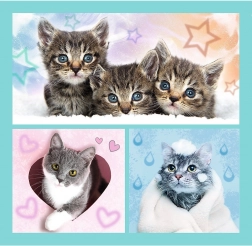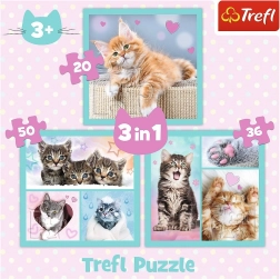 Fedezze fel a szórakozást a 3 az 1-ben puzzle készlettel a TREFL márkától, aranyos kiscicák motívummal. Három különböző méretű kirakó háromszoros rakosgatási élményt nyújt, és ideális fiatalabb és idősebb gyerekeknek egyaránt. Környezetbarát anyagokból készül, a tükröződésmentes felületű papír pedig kényelmes kirakást biztosít.
