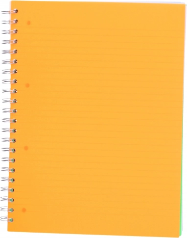 Praktikus, vonalas, spirálkötésű jegyzetfüzet A4-es formátumban, mosható, masszív borítóval és 100 lappal, amely kényelmes írást és áttekinthető jegyzetrendezést kínál. A 4 színes elválasztónak, az iratrendezőhöz való lyukasztásnak és a tiszta lapkitépés lehetőségének köszönhetően ideális iskolába, irodába és utazáshoz.