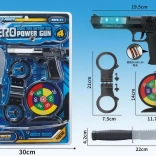 Rendőrségi készlet 20 cm-es pisztollyal, amely tartalmaz fény- és hanghatásokat. Ideális a rendőrségi témák kis rajongóinak.