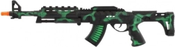 A 62 cm hosszú ARMY gyerek géppisztoly valósághű terepmintás megjelenésével és szikrázó effektjével lelkesíti a kis katonákat. Lendkerékhajtásának köszönhetően elemek nélkül működik, biztonságos narancssárga csúcsa van, és tartós műanyagból készült 3 éves kortól.