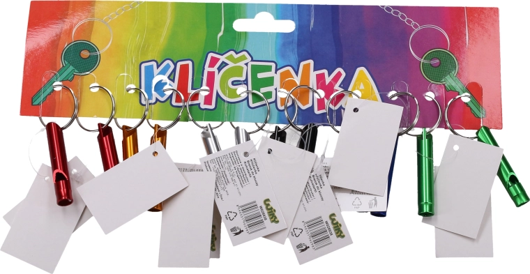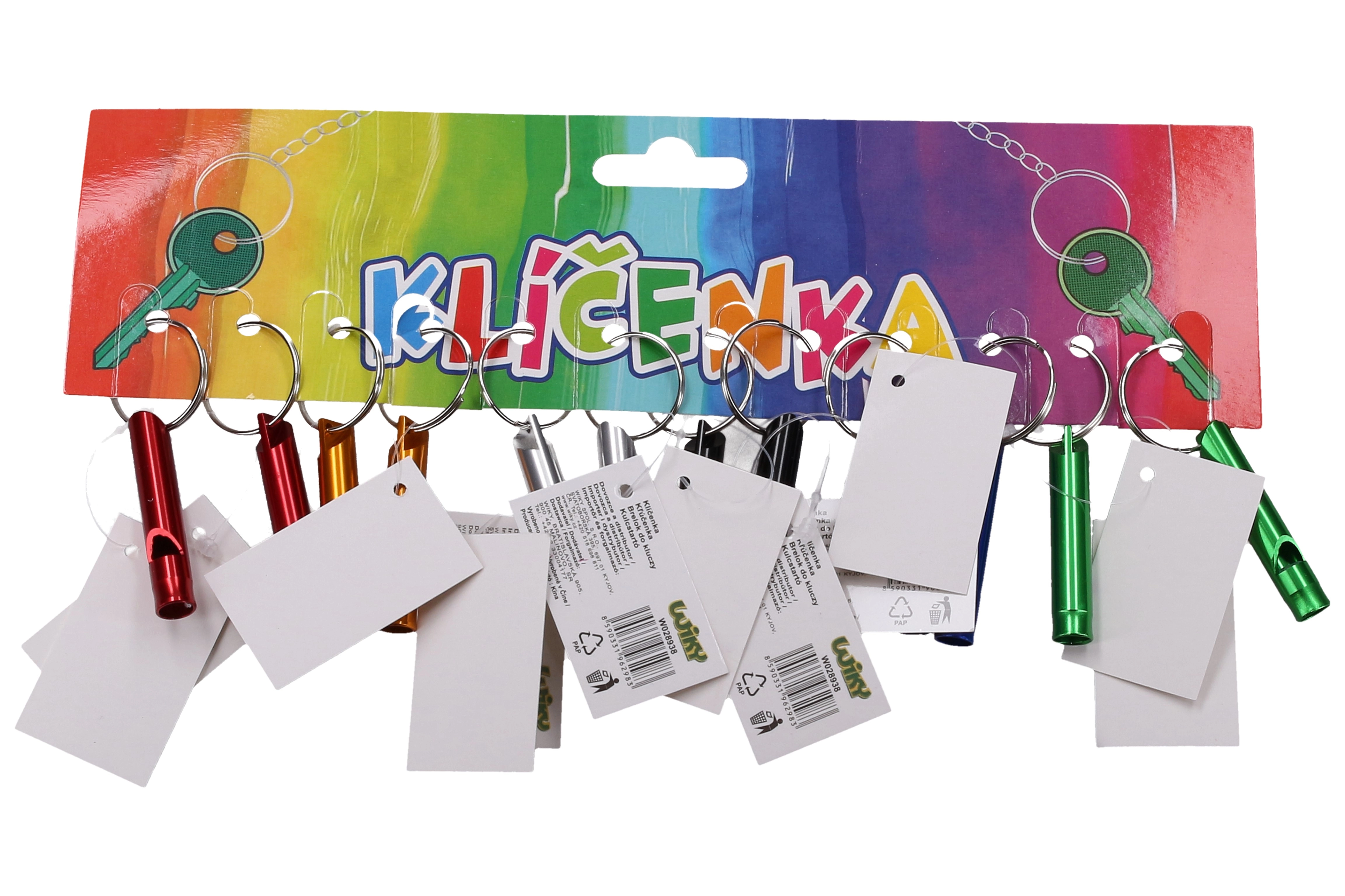 Praktikus színes síppal ellátott kulcstartó, 4,5 cm hosszúsággal – ideális kulcsokra, hátizsákra vagy kézitáskára. Gyors jelzőhangot biztosít a nagyobb biztonság, tájékozódás és szórakozás érdekében.
