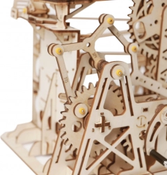 Ez a mechanikus fa modell a tudomány és a gépészet szépségét egyesíti egy magával ragadó golyópályában. A kézi kurblis hajtásnak köszönhetően a fogaskerekek rendszere mozgásba lendül, a felvonó pedig pontosan a pályákra vezeti a golyókat, hintázó és egyenes síneken. Így természetes módon fejleszti a műszaki gondolkodást, a képzelőerőt és a finommotorikát.