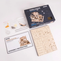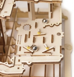 A modell tartalmaz torony elosztót, spirál rámpákat, daru- és kerékemelőt, rövid csúszdát és okosan elhelyezett kapcsolókat, amelyek változtatják a golyók útját. A nehézségi szint 4/5; az összeszerelés kb. 6–7 órát vesz igénybe. Befejezés után egyszerűen tekerje meg a kart, és hagyja, hogy magával ragadja a dinamikus látvány, amely szemléletesen mutatja be a STEM alapelveit.