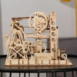 A ROKR Climber kézzel összeállítható golyópálya, lézerrel vágott fa elemekből. Az elegáns, központi „erődre” épülő konstrukció fogaskerekeket, tengelyeket és emelőmechanizmusokat használ, amelyek a golyókat gördülékenyen vezetik az átgondolt pályákon. A készlet fejleszti a műszaki gondolkodást, a képzelőerőt és a finommotorikát – miközben mutatós dizájndekoráció is.