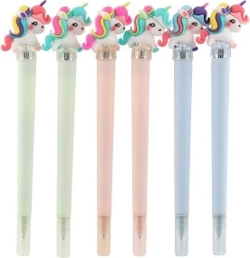 Cuki, világító toll unikornis díszítéssel, amely játékká varázsolja az írást. Elég elcsavarni az unikornist, és a toll felgyullad. Könnyű műanyag kivitel, könnyű fogás gyerekkezeknek, elérhető 3 színben. Tápellátás 3× LR41 (a csomag tartozéka).