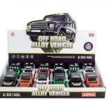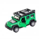 Ez az 1:32 méretarányú off-road kisautó a minőségi ötvözetből készült kivitelezést vonzó dizájnnal ötvözi. A valósághű részletek, a hang- és fényhatások, valamint a nyitható ajtók autentikus vezetési és játékélményt nyújtanak. A gumírozott abroncsok jobb tapadást és stabilitást biztosítanak különféle felületeken.