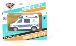 Stílusos kisautó a kis mentősöknek és rendőröknek: fém modell nyitható ajtókkal és visszahúzós (pull-back) meghajtással. Elérhető 4 dizájnban (rendőrség/mentő), szuper választás 3 éves kortól.