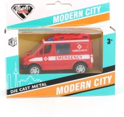 Fém rendőrautó- és mentőautó-modell visszahúzós meghajtással