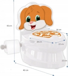 A vidám kutyus megjelenés szórakoztatóvá teszi a bili használatának tanulását, és támogatja a gyerekek önállósodását.