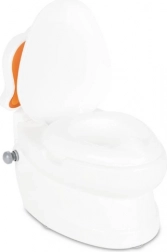 A masszív műanyag konstrukció a mindennapos használatra készült, és biztonságérzetet nyújt ülés közben. Az integrált toalettpapír-tartó segíti a helyes higiénés szokások kialakítását, és közelebb hozza a gyerekekhez a valódi WC használatát.