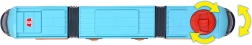 A villamos tetején elhelyezett forgatható logóval a gyerekek intuitívan szabályozhatják a haladás irányát – jobbra és balra.