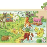 Fedezze fel a kirakás szépségét és örömét fa puzzle-ünkkel. Minden darab a kis kezekhez igazodik, és a gyerekek élvezhetik a gyönyörű farm motívumokat.