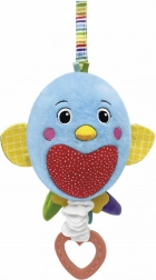 A szívecskés rágóka a madárka alsó részén lóg, és meghúzására szólal meg a finom Brahms dallam, amely nyugtató hatással bír.