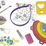 Kreatív készlet négy kiegészítő elkészítéséhez szivárvány színekben. Engedje szabadjára gyermeke fantáziáját a modellező anyagokkal, tempera festékekkel, gyapjúval és más anyagokkal.