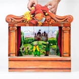 A fából készült színház gyönyörűen kidolgozott részletei mesés atmoszférát teremtenek, amely elvarázsolja a gyerekeket.