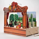 Szépen kidolgozott bábszínház, ideális 3 éves kortól. Ez a színház 8 fa bábút és négy kétoldalas díszletet tartalmaz, amelyek a mese varázsát hozzák el a gyerekszobába. A bábok szín részletei eltérhetnek, ami a hitelességet növeli. A készlet tartalma: