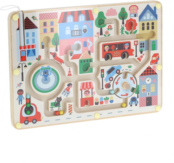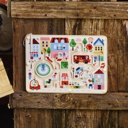 Lépjen be a színek és képzelet világába a Mágneses labirintus Az én városom játékkal. Használjon mágneses tollat a színes golyók városon való vezetéséhez, és fejlessze gyermeke finom motorikus készségeit. Ez a fa játék nemcsak a játékos tanulás eszköze, hanem segít a gyermek szókincsének bővítésében is.