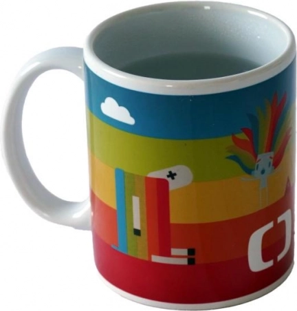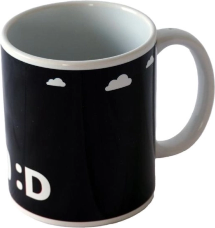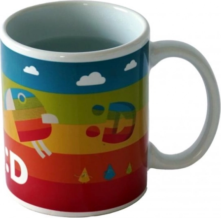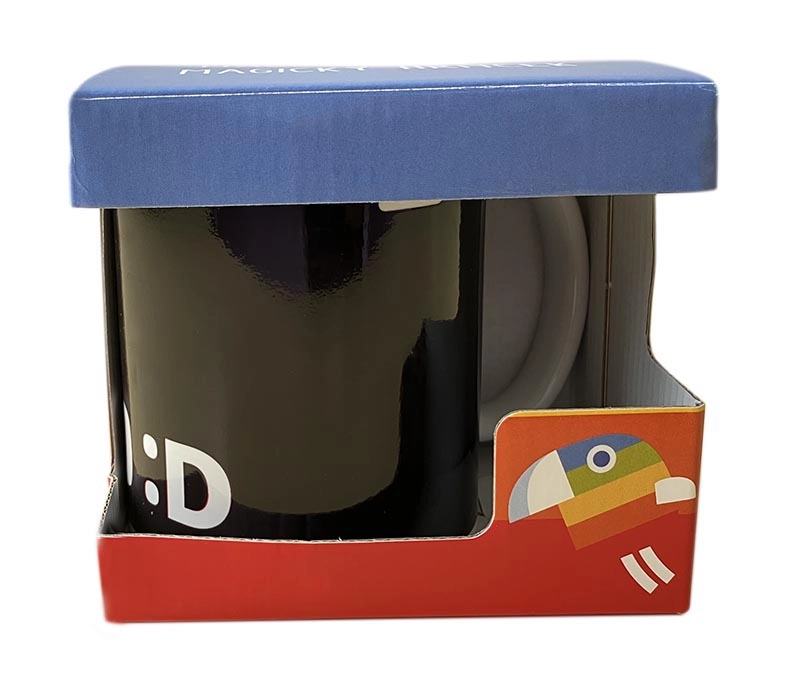 Fedezze fel a mókát minden kortynál a Déčko varázsbögrével. Forró ital hatására a fekete felületen színes képek jelennek meg a Cseh Televízió Déčko csatornájának motívumaival, kihűlés után pedig újra elegáns feketére sötétedik.