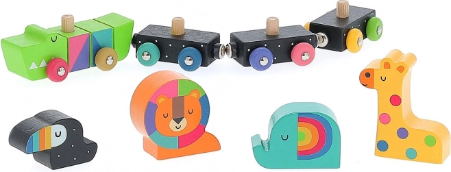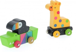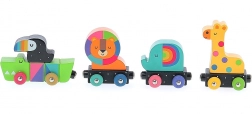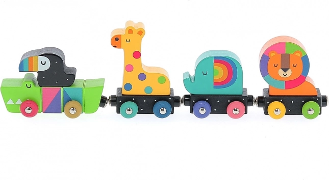 Tartson kreatív utazásra gyermekeivel a színes kisvonat állatokkal, amelyet az elismert illusztrátor, Andy Westface alkotott. Ez az egyedülálló, fából készült készlet különböző méretű, formájú és színpompás kockákat tartalmaz. A mozdony és a vagonok, amelyek állatok, mint például krokodil, oroszlán, elefánt és zsiráf ábrázolását mutatják, ügyesen vannak összekapcsolva mágnesekkel. A gyerekek nemcsak az összeállítást élvezik, hanem az állatok megismerését is.