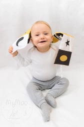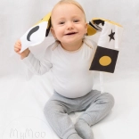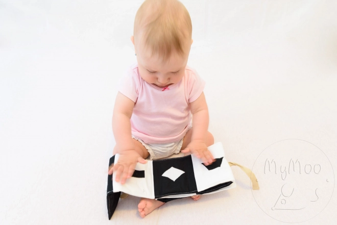 Fedezze fel a kontrasztos textil leporello varázsát a MyMoo-tól, amelyet kifejezetten gyermeke érzékszerveinek stimulálására terveztek. Ideális a látás és a kéz koordinációjának fejlesztésére a legkisebbeknél.